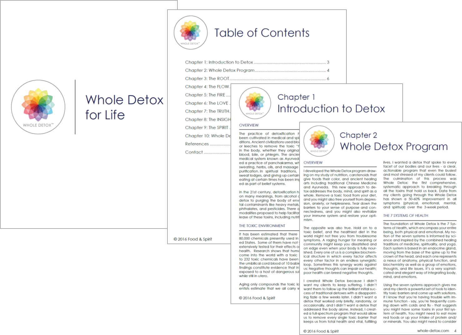 The Whole Detox for Life Report is an in-depth, practical guide on how you can stay healthy through foods and lifestyle using the wisdom of nutrition and the spirit of color.